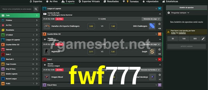 A aposta fwf777 oferece aos jogadores a experiência mais conveniente de apostas em eSports!